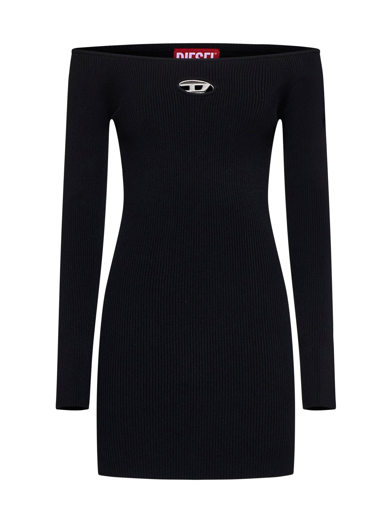 •Wide neckline, off-the-shoulder •Long sleeves •Metal Oval D plate at chest with cut-out detailing •Ribbed viscose blend knit •Slim fit •Black color •83% Viscose, 17% Polyester •Made in China Size and fit: Model is 173 cm tall and wears size S Country of manifacture: Repubblica Popolare Cinese ID designer: A141880DLAX9XX