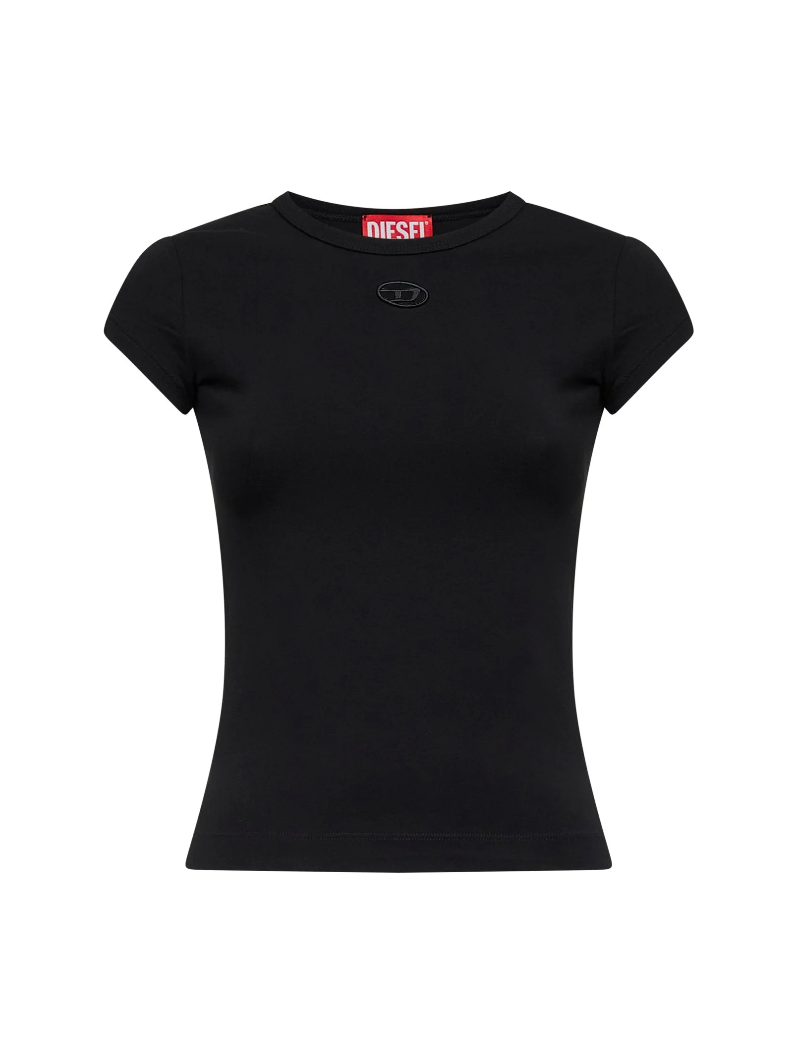 - Ribbed crewneck - Cap sleeves - Laser-cut and embroidered oval d logo at front; cut-out detailing - Straight hem - Organic cotton stretch jersey design - Fitted fit - Black color - 93% cotton, 7% elastane - Made in extra eu Natural (Veg): Cotton93 % Synthetic: Elastane7 % Made in: Repubblica Popolare Cinese Season: P26 A199120AFAA9XX