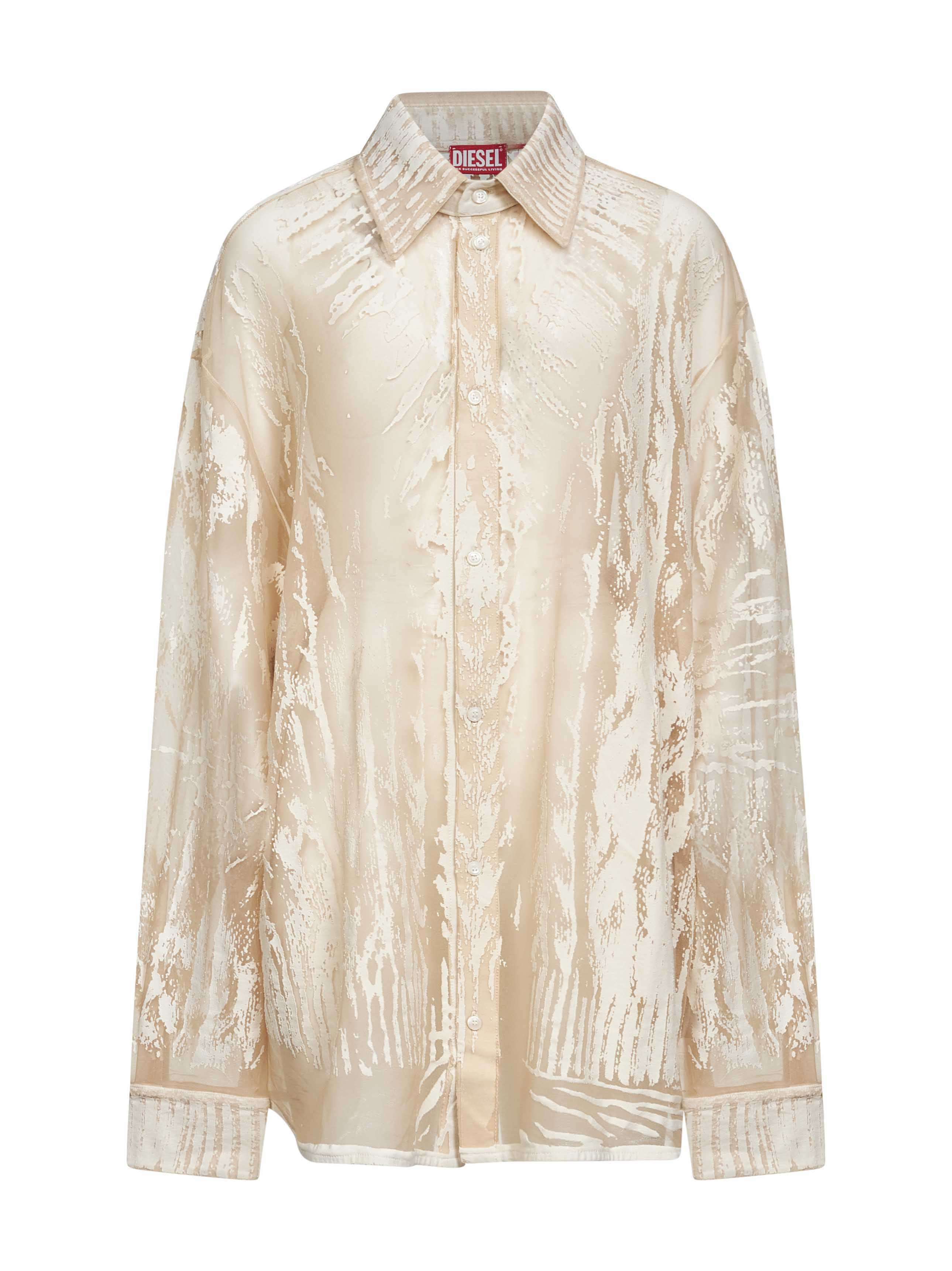 - Front button placket - Classic collar - Long sleeves, dropped shoulders, buttoned cuffs - Curved hem - All-over contrasting graphic print - Long cut - Oversized fit - Color: multicolor - 83% cotton, 13% polyester, 4% elastane - Made in bulgaria Natural (Veg): Cotton83 % Synthetic: Polyester13 % Synthetic: Elastane4 % Made in: Bulgaria Season: A25 A215780SHAY100