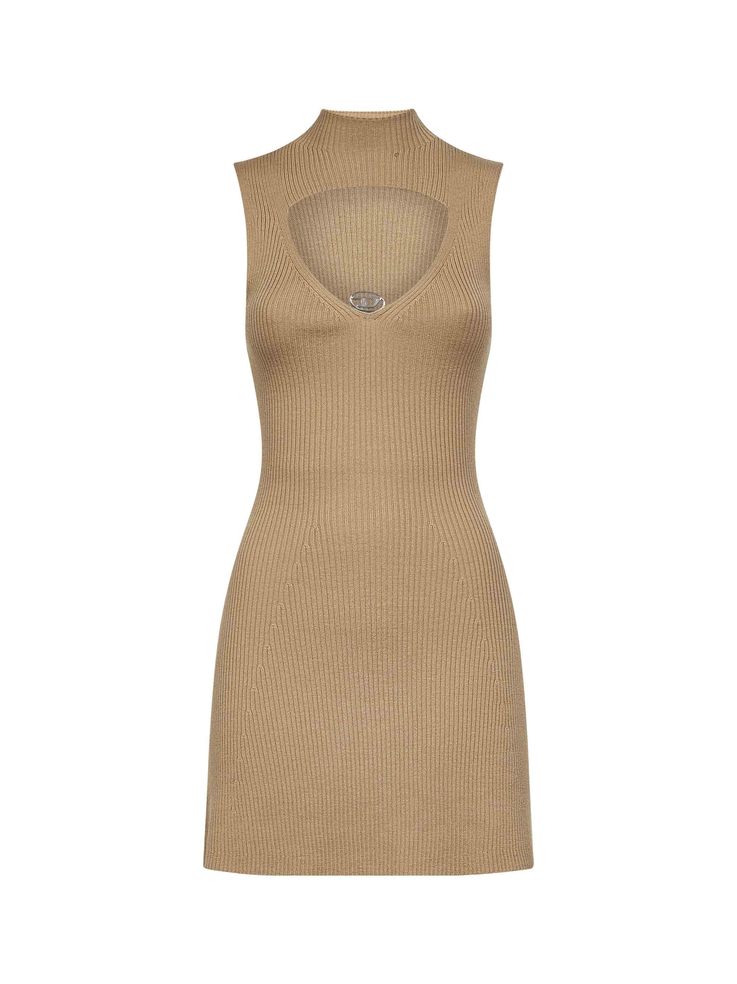 - Ribbed stand-up collar; triangle cut-out at neckline with metal oval d logo plate - Wide shoulder straps; sleeveless - 2x2 ribbed wool knit design - Fitted fit - Camel color - 100% wool - Made in italy Wool or fine animal hair: Wool100 % Made in: ITALIA Season: A25 A196670PLBF7CS