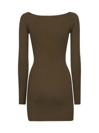 - Wide boat neckline; off-the-shoulder - Long sleeves - Intarsia metal oval d plate at chest with cut-out details - Ribbed viscose knit design - Fitted fit - Green color - 83% viscose, 17% polyester - Made in extra eu Synthetic: viscose83 % Synthetic: Polyester17 % Made in: Repubblica Popolare Cinese Season: A25 A141880DLAX5FP