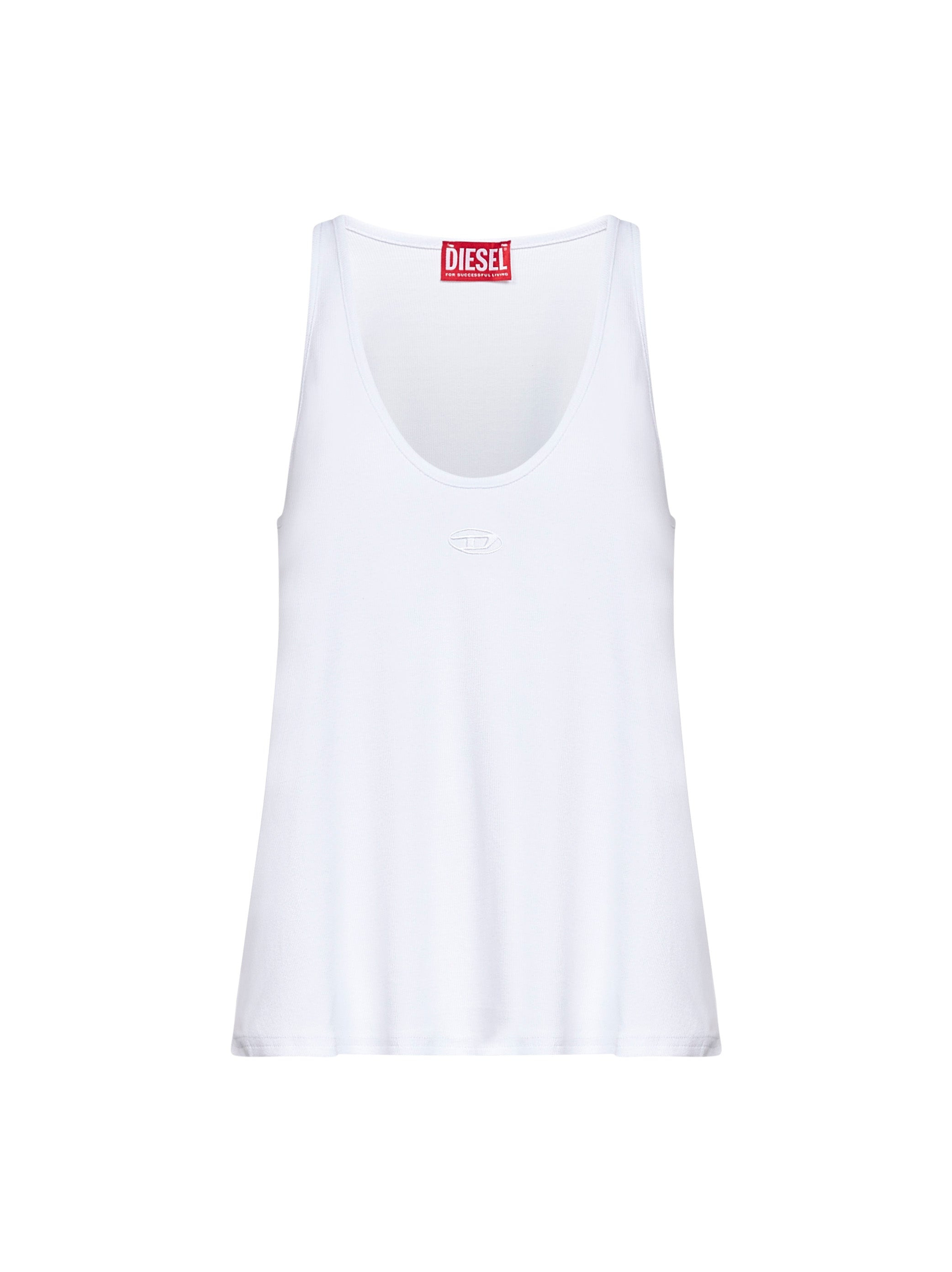 - Round neckline, racerback - Sleeveless - Tone-on-tone oval d logo embroidery at chest - Slightly flared bottom - Ribbed stretch jersey design - White color - 96% cotton, 4% elastane - Made in bulgaria Natural (Veg): Cotton96 % Synthetic: Elastane4 % Made in: Bulgaria Season: A25 A215730JEAI100