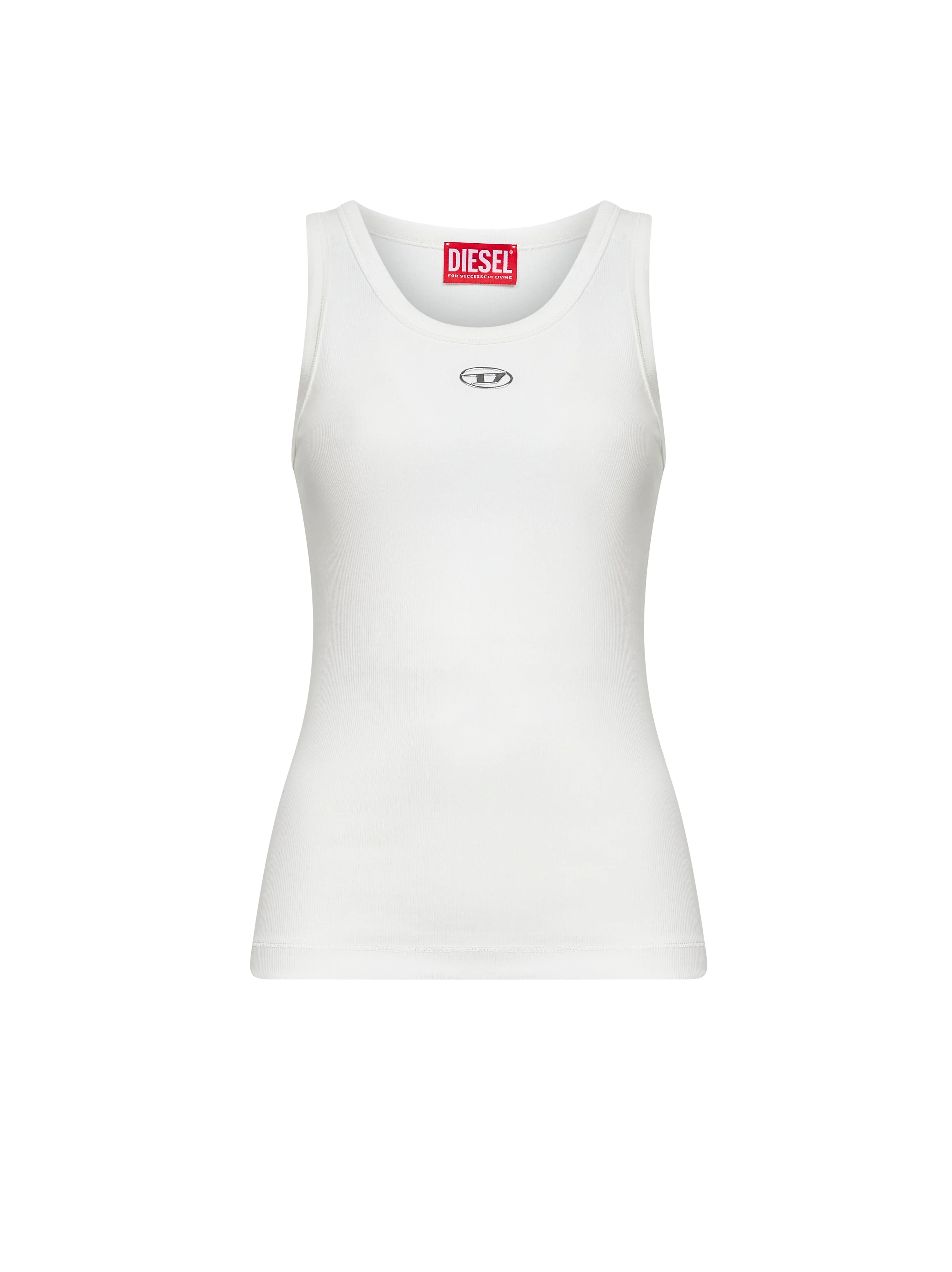- Ribbed crewneck - Wide shoulder straps; sleeveless - Silver injection-molded oval d logo at front - Straight hem - Slim fit - White color - 96% cotton, 4% elastane - Made in extra eu Natural (Veg): Cotton96 % Synthetic: Elastane4 % Made in: Repubblica Popolare Cinese Season: P26 A199080JMBA141