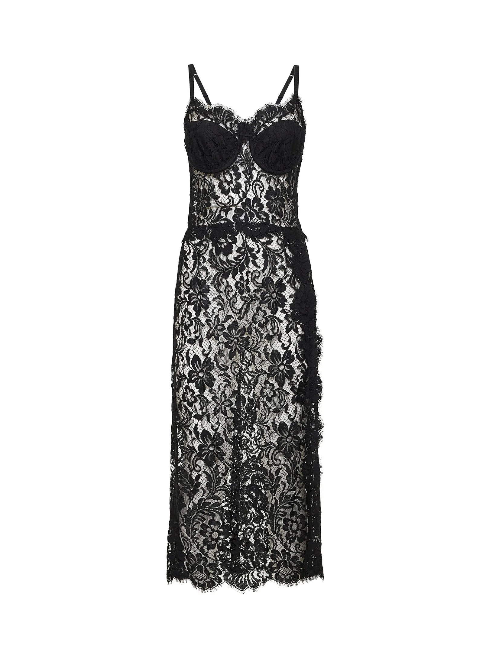 - Back covered zip closure - Sweetheart neckline with scalloped edge and pre-shaped cups; lined cups, underwire - Adjustable elasticated thin straps - Waist cut with scalloped edge - Side slit with scalloped edge - Scalloped hem - Unlined - Black color - 65% cotton, 20% polyamide, 15% viscose - Made in italy Natural (Veg): Cotton65 % Synthetic: Polyamide20 % Synthetic: viscose15 % Made in: Italy Season: P26 F60BLTHLMDAN0000