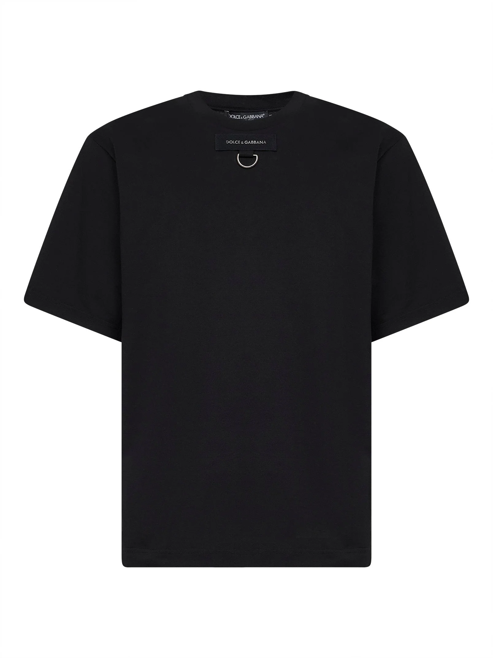 - Ribbed crewneck - Short sleeves, soft shoulders - Grosgrain label at front with metal logo and metal d-ring - Straight hem - Black color - 100% cotton - Made in italy Natural (Veg): Cotton100 % Made in: Italy Season: P26 G8PN9TG7PZHN0000