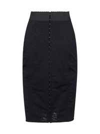 - Back hook-and-eye closure - Elasticated high waist with scalloped trim - Marquisette elastic front panel with lace insert - Scalloped trim at hem - Midi length - Black color - 72% polyamide, 18% elastane, 10% polyester - Made in italy Synthetic: Elastane18 % Synthetic: Polyamide72 % Synthetic: Polyester10 % Made in: ITALIA Season: A25 F4C4BTGDC2CN0000