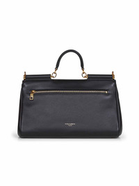 - Foldover-top with tuck-in fastening - Top leather handle; adjustable and detachable leather shoulder strap - Metal logo tag at front; gold stamp at back - Detachable leather tag with gold stamp and metal padlock and key - Interior: one main compartment, one zip pocket; exterior: back zip pocket - Gusseted sides with magnetic fastening - Vintage brass-toned metal hardware - Plonge calfskin design - 30 x 20 x 13 cm - Black color - 95% calf leather, 5% pvc - Made in italy Furs & Skins: Calf Leather95 % Synthetic: PVC5 % Made in: ITALIA Season: A25 BB7782B732180999