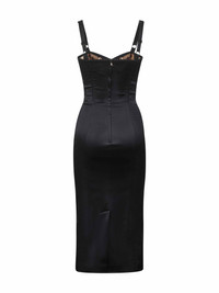 - Covered back zip closure - Sweetheart neckline; partially-padded cups with underwiring - Adjustable elastic shoulder straps - Boned bodice - Central slit at bottom back - Stretch silk satin lining - Calf-lenght - Black color - 74% acetate, 21% polyamide, 5% silk - Made in italy Synthetic: Acetate74 % Synthetic: Polyamide21 % Natural (Other): Silk5 % Made in: ITALIA Season: A25 F6DIHTGDDB2N0000