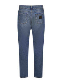 - Covered front closure, metal logo button - Waist with belt loops - Five-pocket model - Logo label at coin pocket; dolce&gabbana metal logo plate at back pocket - Fading and light whiskering - 17 cm hem (size it 48) - Regular fit - Blue color - 100% cotton - Made in italy Natural (Veg): Cotton100 % Made in: Italy Season: A25 GYJCCDG8NR9S9001