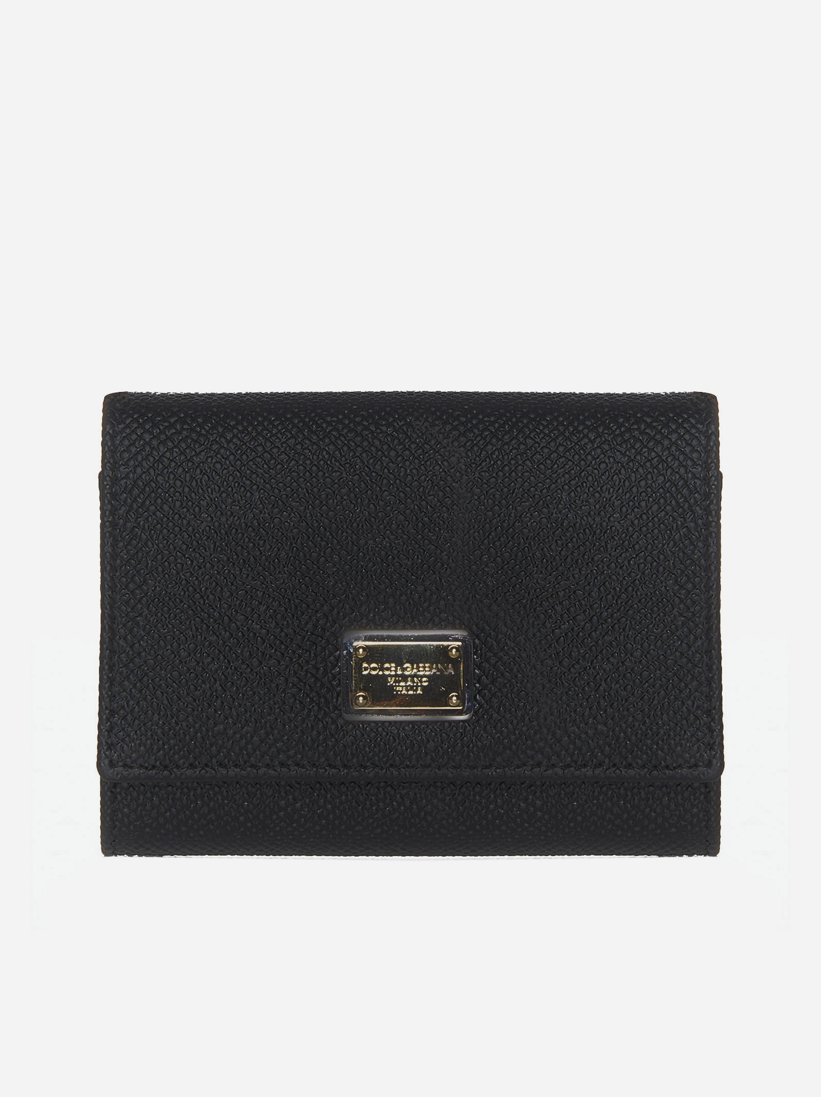 Dolce & Gabbana’s black textured trifold leather featuring a flap with logo plaque and snap button fastening, a back zip pocket, internal bill compartment and card slots and gold-tone metal hardware. Color: Black Size and fit: 10 x 9 x 2 cm Composition: 100% calfskin Country of manifacture: Italy ID designer: BI0770A100180999