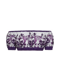 - Straight stretch neckline; off-the-shoulder - Short sleeves, elasticated cuffs - Elasticated hem - Purple maiolica print - Cropped length - White color - 100% cotton - Made in italy Natural (Veg): Cotton100 % Made in: ITALIA Season: A25 F755RTHH5EQI23TN