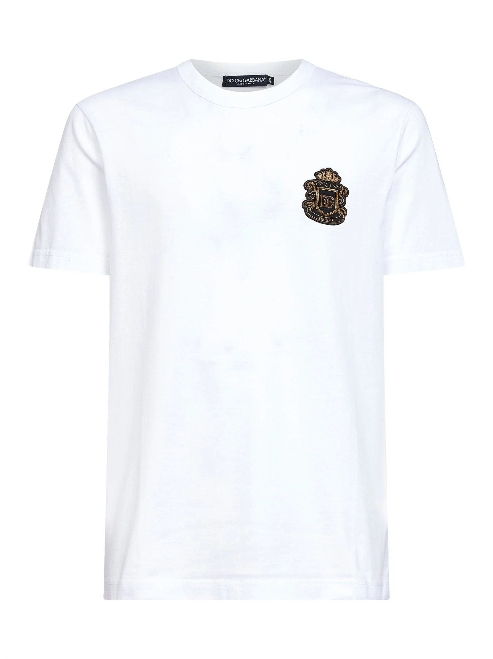 - Ribbed crewneck; embroidered logo label at neckline - Short sleeves - Heraldic patch with thread and bead embroidery at chest - Straight hem - Classic fit - White color - 100% cotton - Made in italy Natural (Veg): Cotton100 % Made in: Italy Season: P26 G8PT1ZG7PZUW0800
