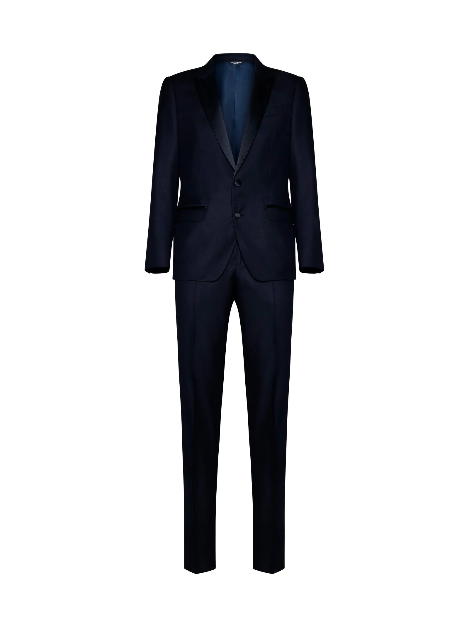 Dolce & Gabbana’s blue virgin wool and silk blend tailored suit. Single-breasted blazer featuring satin peak lapels, chest pocket, front flap pockets and back vent. Slim-fit straight-leg trousers featuring belt loops, button and zip fastening, four-pocket cut and ironed crease. Color: Blue Size and fit: Model is 186 cm tall and wearing a size IT 48 Composition: 90% virgin wool 7% silk 3% polyester Country of manifacture: Italy ID designer: GKPFMTFM2GSS8031