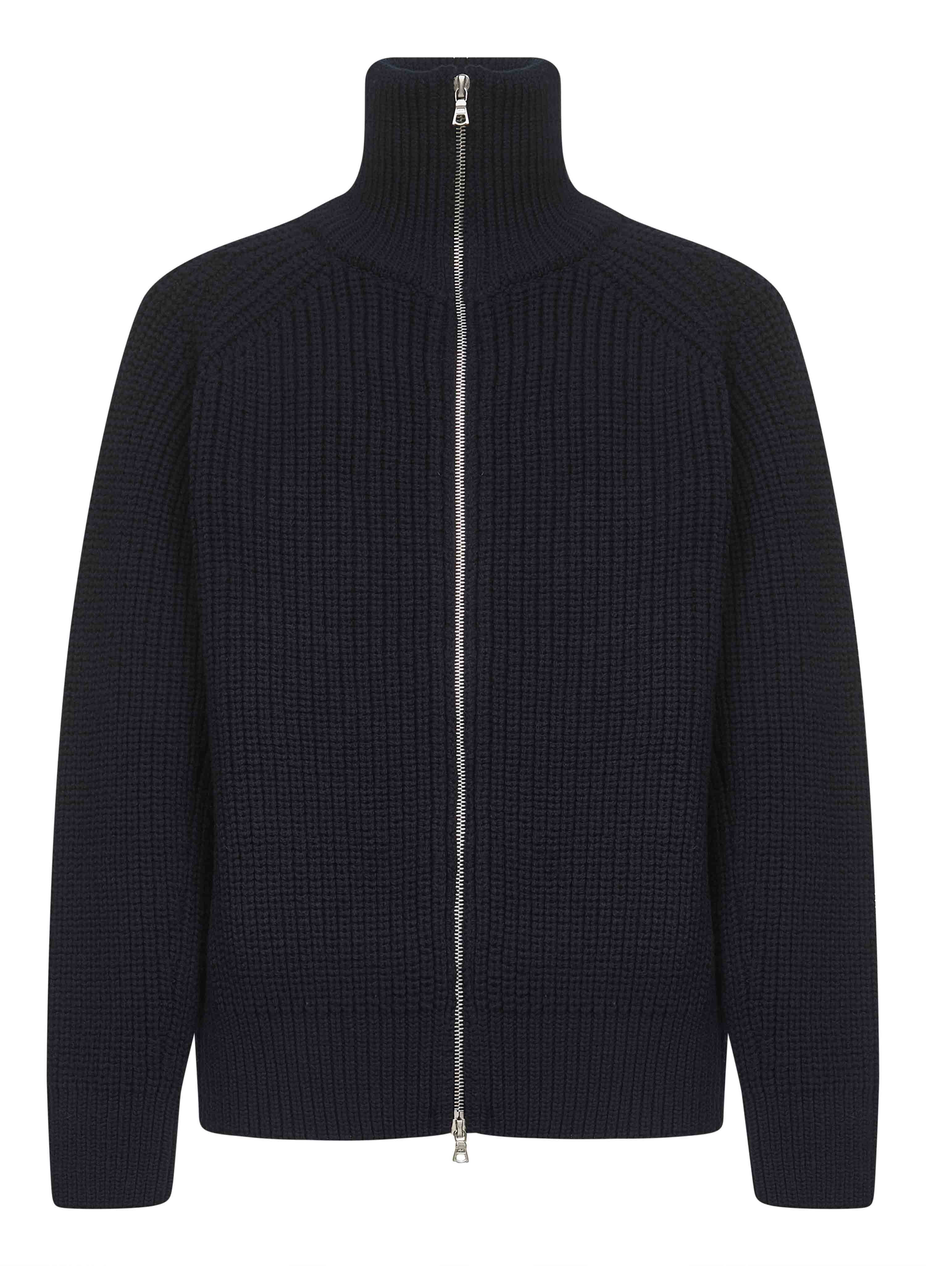 - Front double-slider zip closure - High collar with side metal zip detail - Long sleeves, raglan shoulders - Side metal zip detail at bottom - Ribbed cuffs and bottom band - English rib knit design - Black color - 100% wool - Made in belgium Wool or fine animal hair: Wool100 % Made in: Belgio Season: A25 0212172707900
