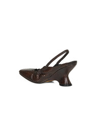 Snake-effect leather slingback wedge pumps Dark brown