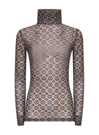 - High collar - Long sleeves - Straight hem - All-over multicolor mini tie print - Semi-sheer design - Slim fit - Brown color - 94% polyamide, 6% elastane - Made in extra eu Synthetic: Polyamide94 % Synthetic: Elastane6 % Made in: Turchia Season: A25 0111212623703