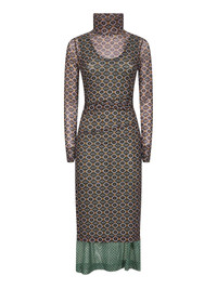 - High collar - Long sleeves - Side gathered detailing at waist; gathered detailing at back - Slightly flared hem - Asymmetric double-layer stretch mesh design with contrasting mini tie prints; semi-sheer - Midi length - Fitted fit - Brown color - 94% polyamide, 6% elastane - Made in extra eu Synthetic: Polyamide94 % Synthetic: Elastane6 % Made in: Turchia Season: A25 0111242623703