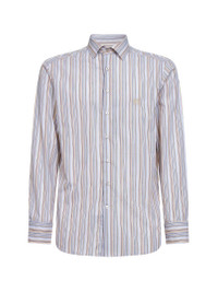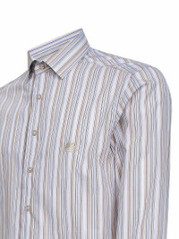 - Front button placket - Straight-point collar - Long sleeves, adjustable buttoned cuffs - Small pegaso logo embroidery at chest - Back yoke - Curved hem - Logo buttons - Multicolor vertical striped pattern - Regular roma fit - Beige color - 100% cotton - Made in italy Natural (Veg): Cotton100 % Made in: ITALIA Season: P26 MRIB000299TR590S9840