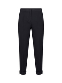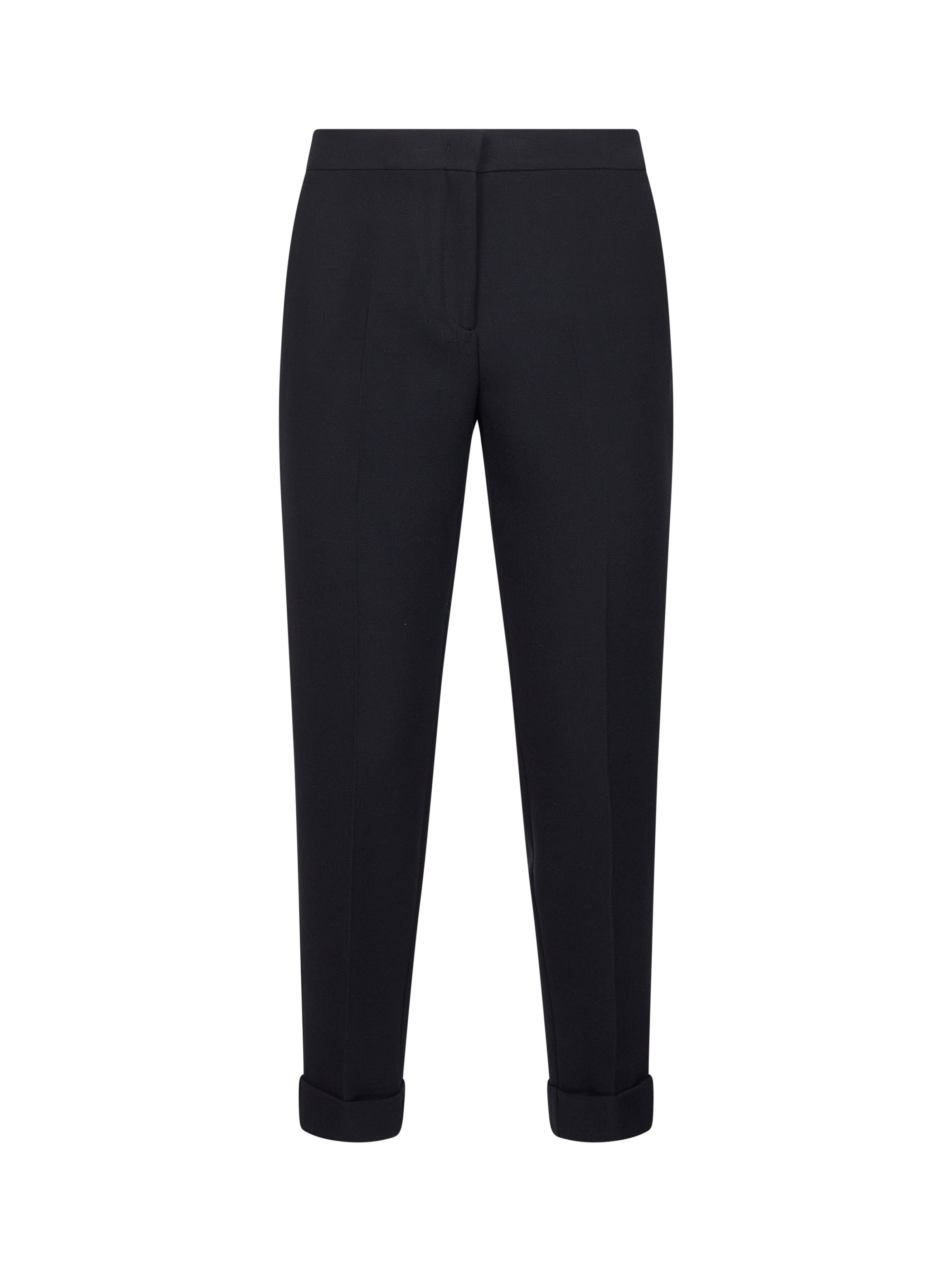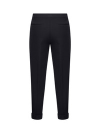 - Covered front closure - Mid-rise waist - Side pockets, back welt pockets - Turn-up hems - Pressed legs creases - Cigarette fit - Blue color - 52% polyester, 44% wool, 4% elastane - Made in italy Synthetic: Polyester52 % Wool or fine animal hair: Wool44 % Synthetic: Elastane4 % Made in: Italy Season: A25 WREA000299TUBN6B3895