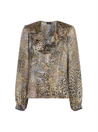 - Front button placket - V-neckline with ruffle detail - Long puff sleeves, buttoned cuffs - Straight hem - Fabric-covered buttons - All-over multicolor animalier print at background with floral-inspired paisley pattern overlay - Regular fit - Brown color - 100% silk - Made in italy Natural (other): Silk100 % Made in: ITALIA Season: P26 WRIA009499SA1N9X0826