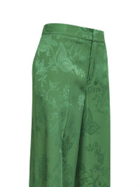 Green floral jacquard viscose blend wide-leg trousers