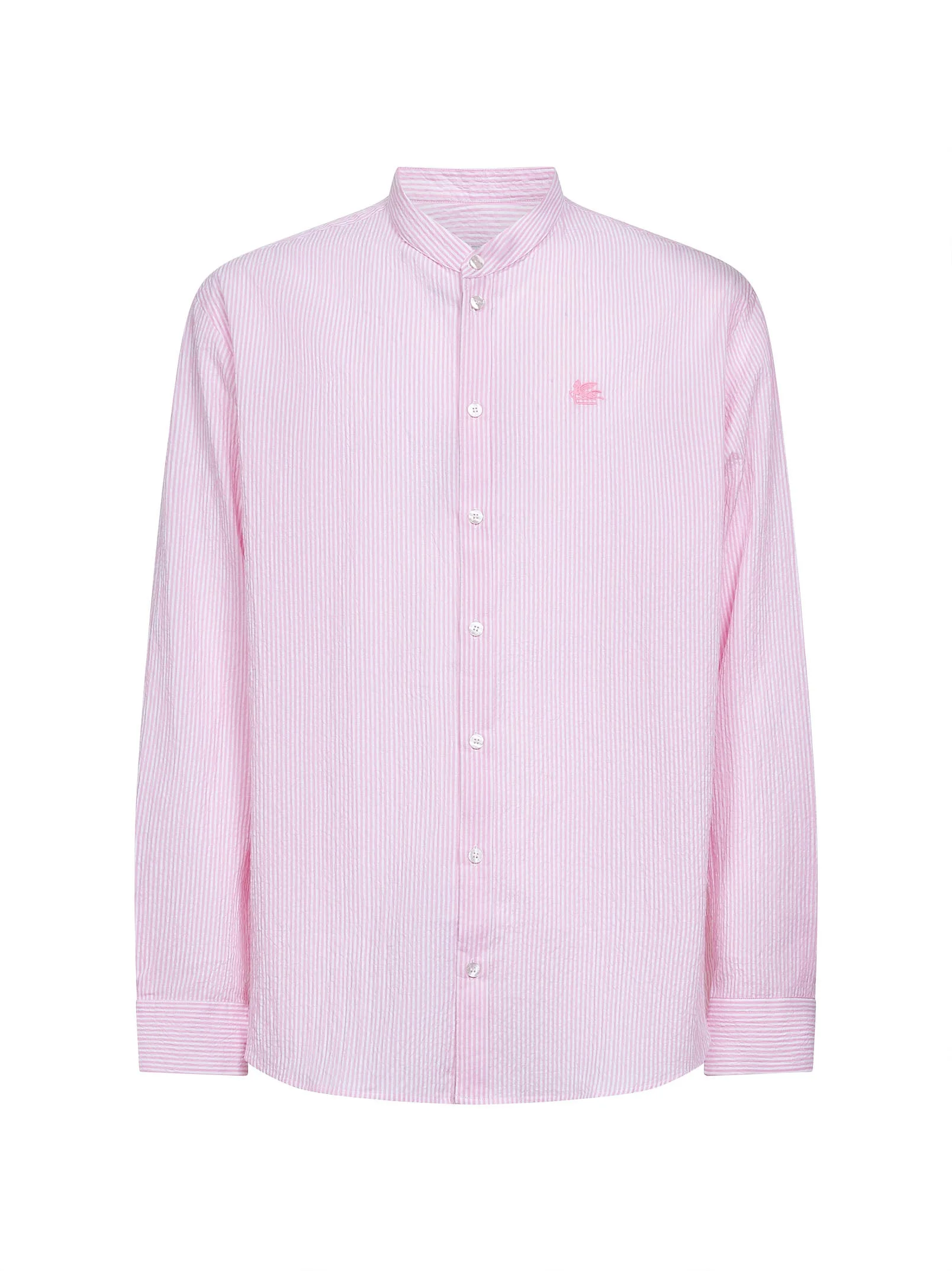 - Front button placket - Guru collar - Long sleeves, soft shoulders, adjustable buttoned cuffs - Small tone-on-tone pegaso logo embroidery at chest - Back yoke - Curved hem - Logoed buttons - Vertical striped pattern - Easy fit - Pink color - 100% cotton - Made in italy Natural (Veg): Cotton100 % Made in: ITALIA Season: P26 MRIC006799TR596S9870