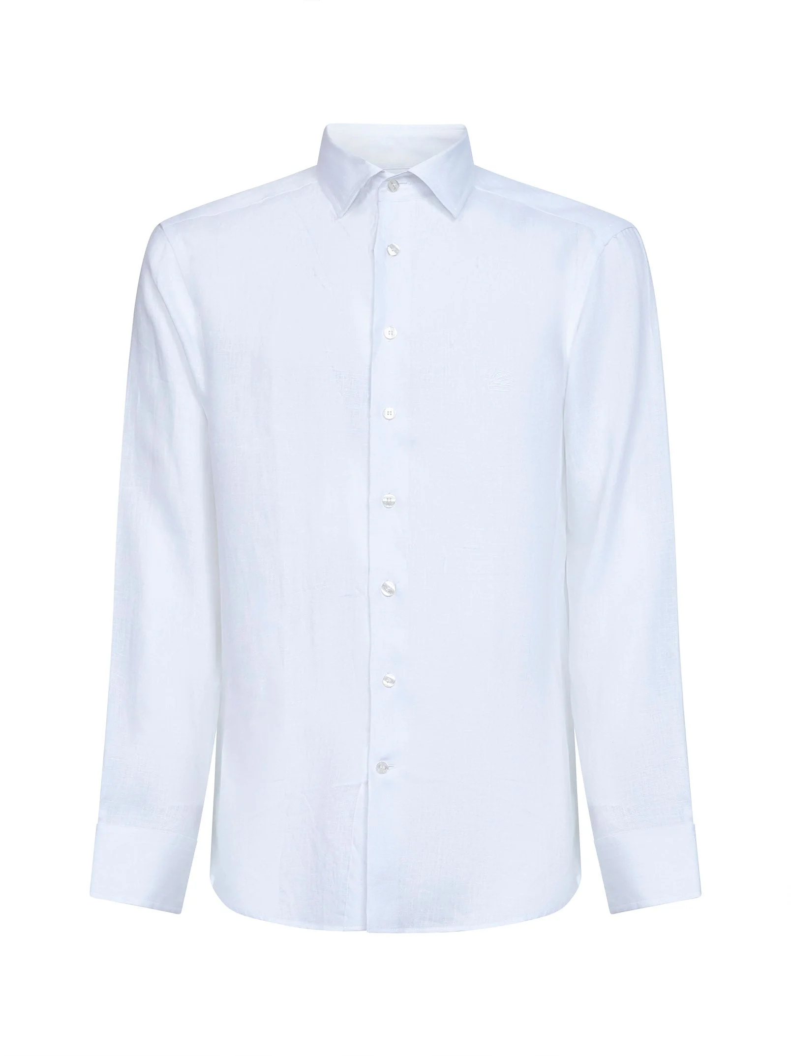 - Front button placket - Straight-point collar - Long sleeves, adjustable buttoned cuffs - Small tone-on-tone pegaso logo embroidery at chest - Back yoke - Curved hem - Logoed buttons - Regular roma fit - White color - 100% linen - Made in italy Natural (Veg): Linen/Flax100 % Made in: ITALIA Season: P26 MRIB000299TU3F3W0800