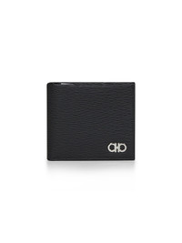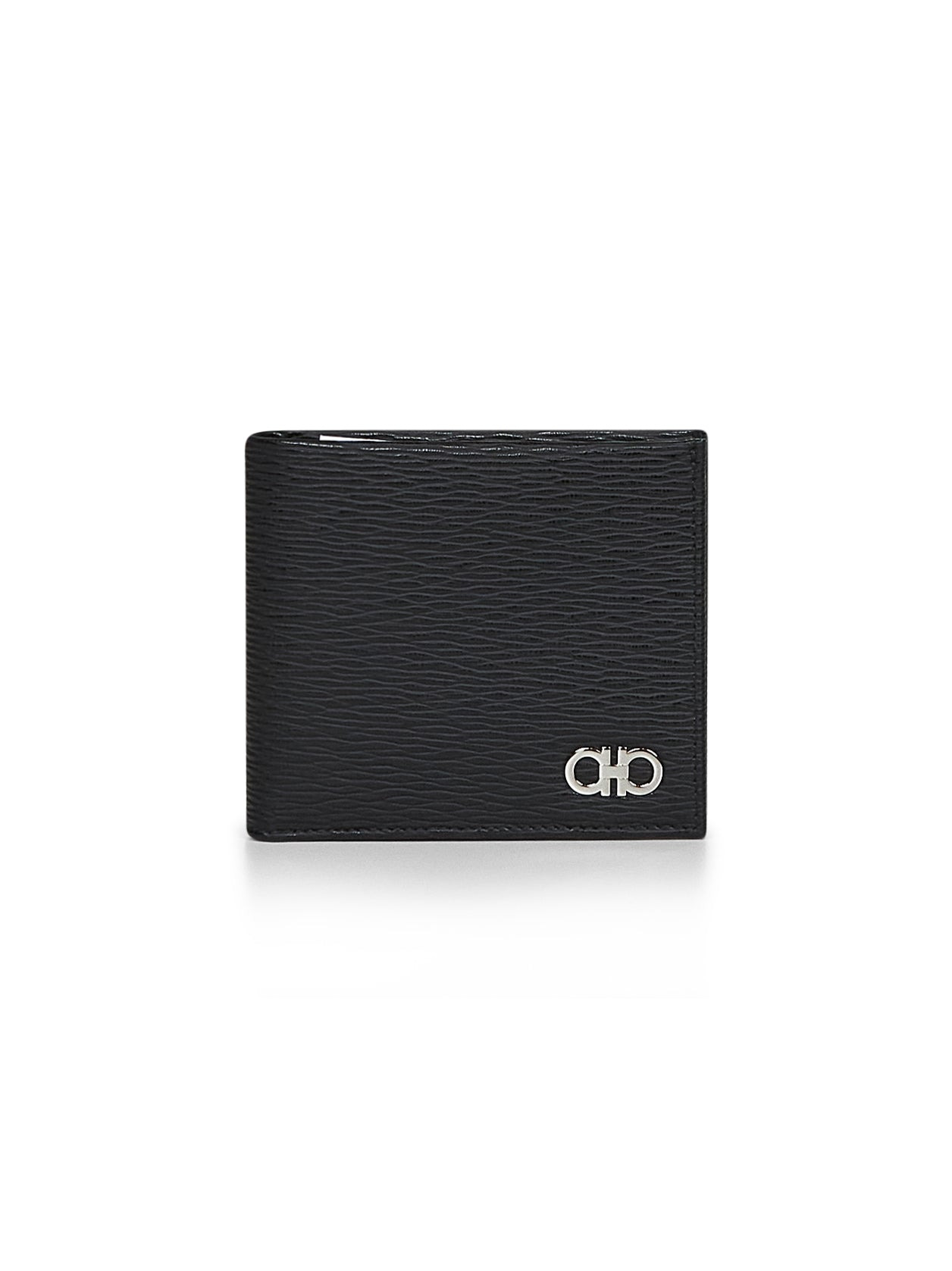 - Bi-fold design - Silver-toned metal gancini detail at front - Interior: bills compartments, flat receipts pockets, credit cards slots; smooth ferragamo red leather interior - Metal-free tanned hammered calfskin design - 11 x 9 cm - Black color - 100% calf leather - Made in italy Furs & Skins: Calf Leather100 % Made in: ITALIA Season: A25 66A063REVIVALGANCIO685956