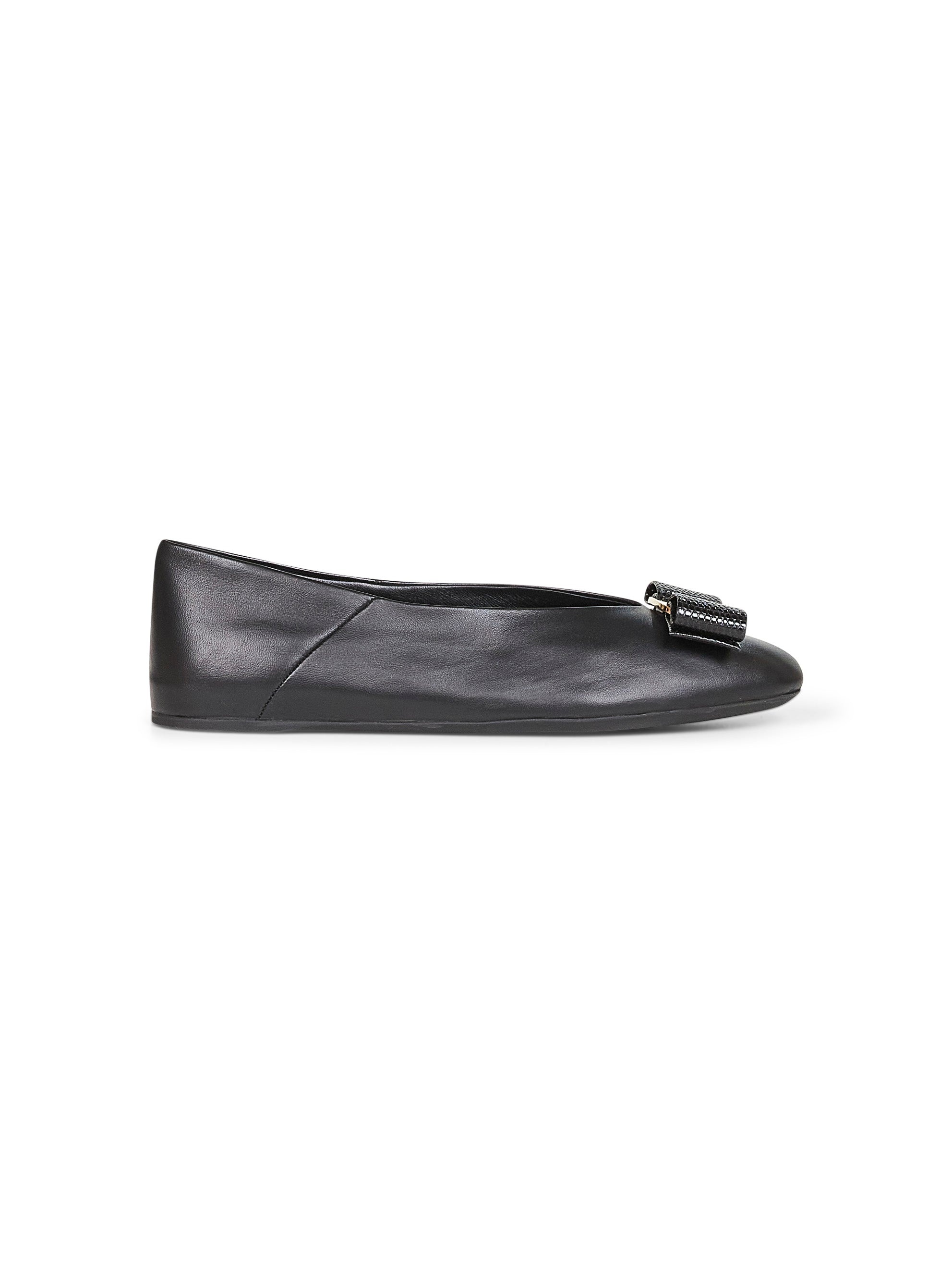 - Slip-on - Rounded toe - High-cut vamp; foldable heel - Nappa leather upper with textured leather vara bow at front with engraved-logo gold-toned metal plate - 1 cm inner footbed - Heel height: 5mm - Black color - 100% lambskin - Made in italy Furs & Skins: Lamb Skin100 % Made in: ITALIA Season: A25 01K221VANNA782883
