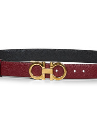 - Adjustable gold-toned metal double gancini buckle fastening; detachable buckle - Two-tone leather loops - Reversible hammered calfskin leather design - Height: 2.5 cm - Color: burgundy/black - 100% calf leather - Made in italy Furs & Skins: Calf Leather100 % Made in: ITALIA Season: A25 23A565DONNAH25780393