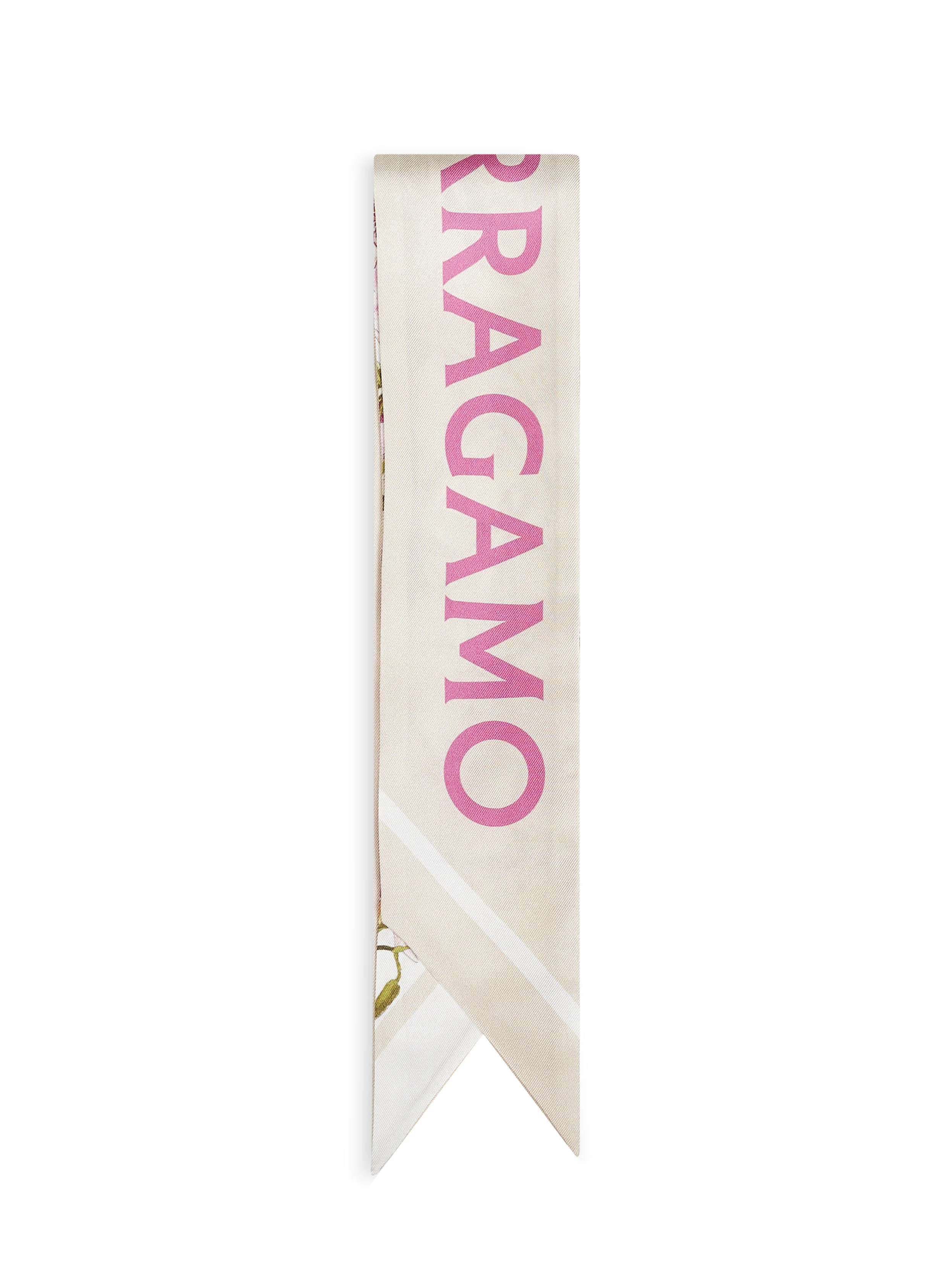 - Pointed edges with contrasting striped pattern - Solid color silk twill exterior with contrasting ferragamo jacquard signature; multicolor gaia print silk twill interior - 140 x 7 cm - Color: light ballet/ivory - 100% silk - Made in italy Natural (other): Silk100 % Made in: ITALIA Season: P26 321242MBGAIA789922