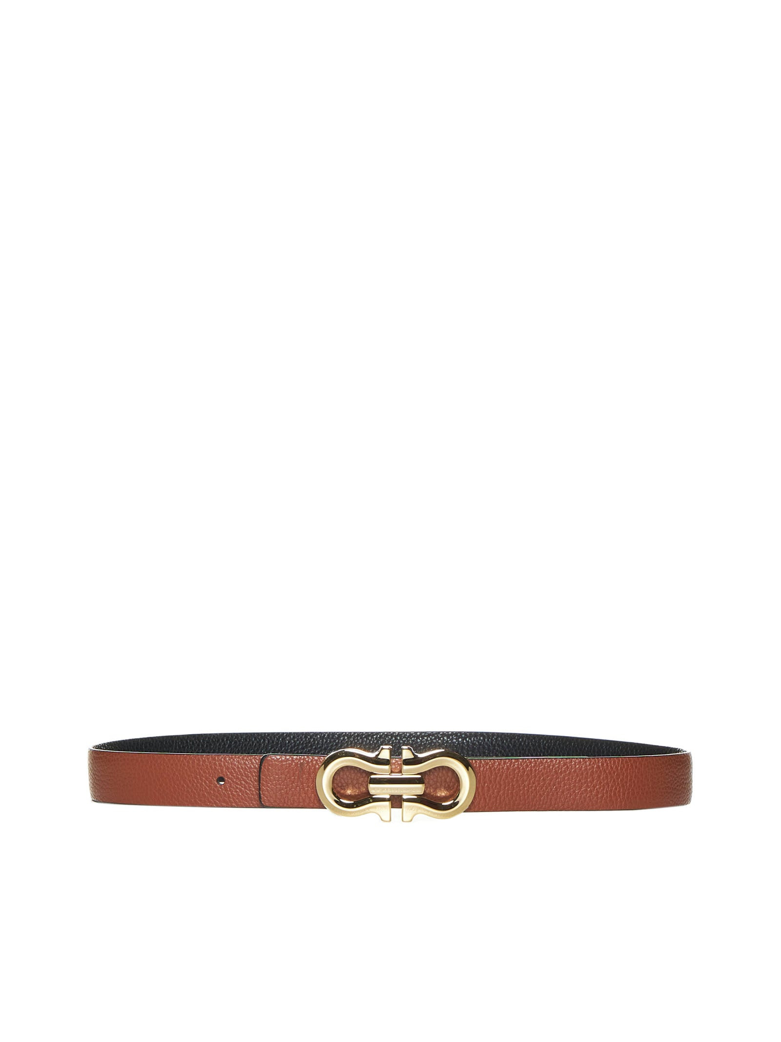 Ferragamo’s cognac-tone and black leather reversible belt featuring rounded Gancini buckle in gold-tone metal. Color: cognac - black Composition: 100% calfskin Country of manifacture: Italy ID designer: 230329DONNAH25775597