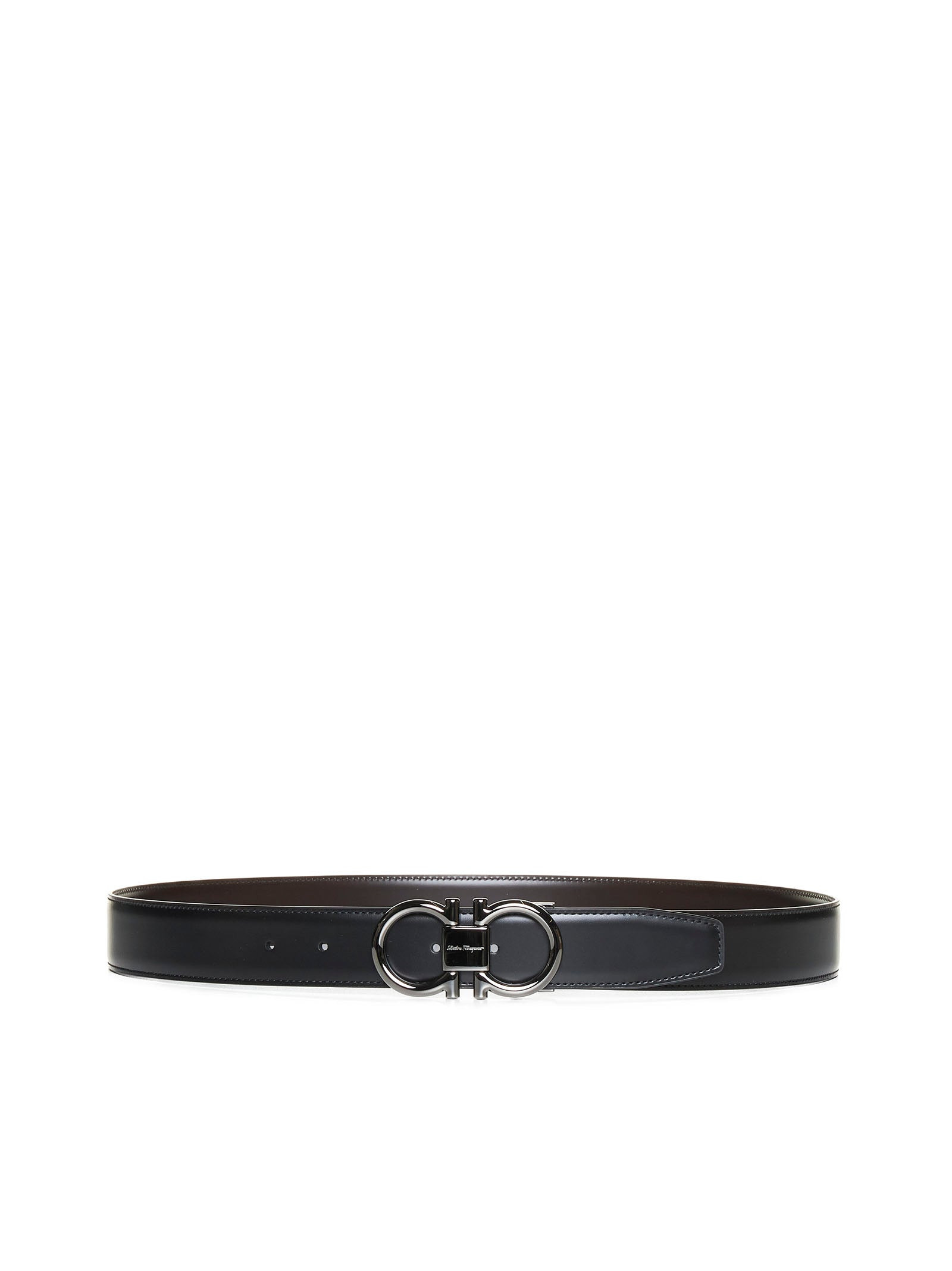 Ferragamo’s reversible belt in black and dark brown leather with Gancini logo buckle in silver-tone metal. Color: Black - hickory Size and fit: Width: 35 mm Composition: 100% calfskin Country of manifacture: Italy ID designer: 679938DOUBLEADJUS694531