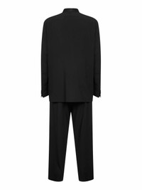 - Blazer: double-breasted four-button placket; smooth satin shawl collar; long sleeves, dropped shoulders, four-button cuffs; welt waist pockets; satin-covered buttons; lined; length: 78 cm - Trousers: covered front closure; smooth satin waistband; side pockets, back welt pockets; single front pleat; hem width: 19 cm - Black color - 100% virgin wool - Made in italy Wool or fine animal hair: Virgin Wool100 % Made in: ITALIA Season: A25 GM002553TE10043UC001