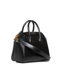 - Top zip fastening - Double top leather handle; adjustable and detachable leather shoulder strap - Pentagonal patch with gold-embossed givenchy signature at front - Interior: one main compartment, two flat pockets, one zip pocket; canvas lining - Leather feet - Gold-toned metal hardware - Box calf leather design - 26 x 19 x 13 cm; shoulder strap: 104 cm - Black color - 100% calf leather - Made in italy Furs & Skins: Calf Leather100 % Made in: ITALIA Season: A25 BB5148B2AT001