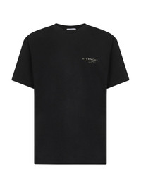 - Ribbed crewneck - Short sleeves - Contrasting "givenchy 3, avenue george v, paris" print at chest - Classic fit - Black color - 100% cotton - Made in portugal Natural (Veg): Cotton100 % Made in: Portogallo Season: A25 BM71NK3YRV001