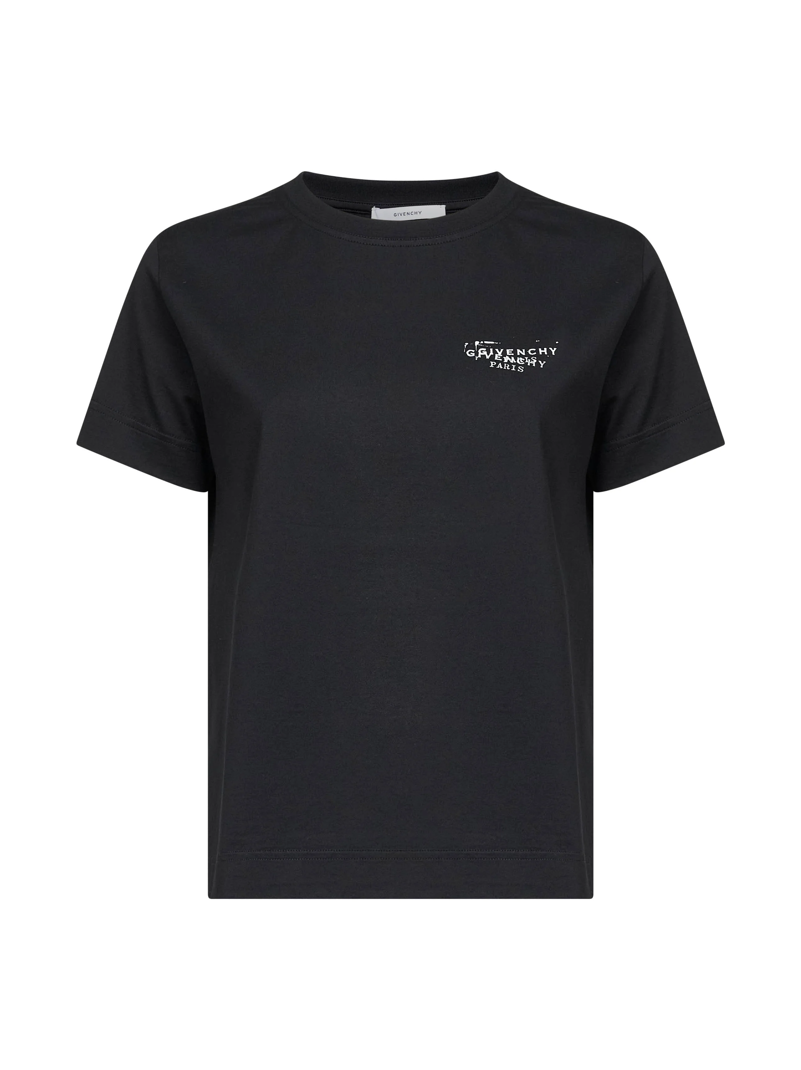 - Ribbed crewneck - Short sleeves - Small contrasting givenchy stamp print at chest; contrasting givenchy stamp print at back - Straight hem - Cotton jersey design - Regular fit - Black color - 100% cotton - Made in portugal Natural (Veg): Cotton100 % Made in: Portugal Season: P26 BW70FJP7A7001