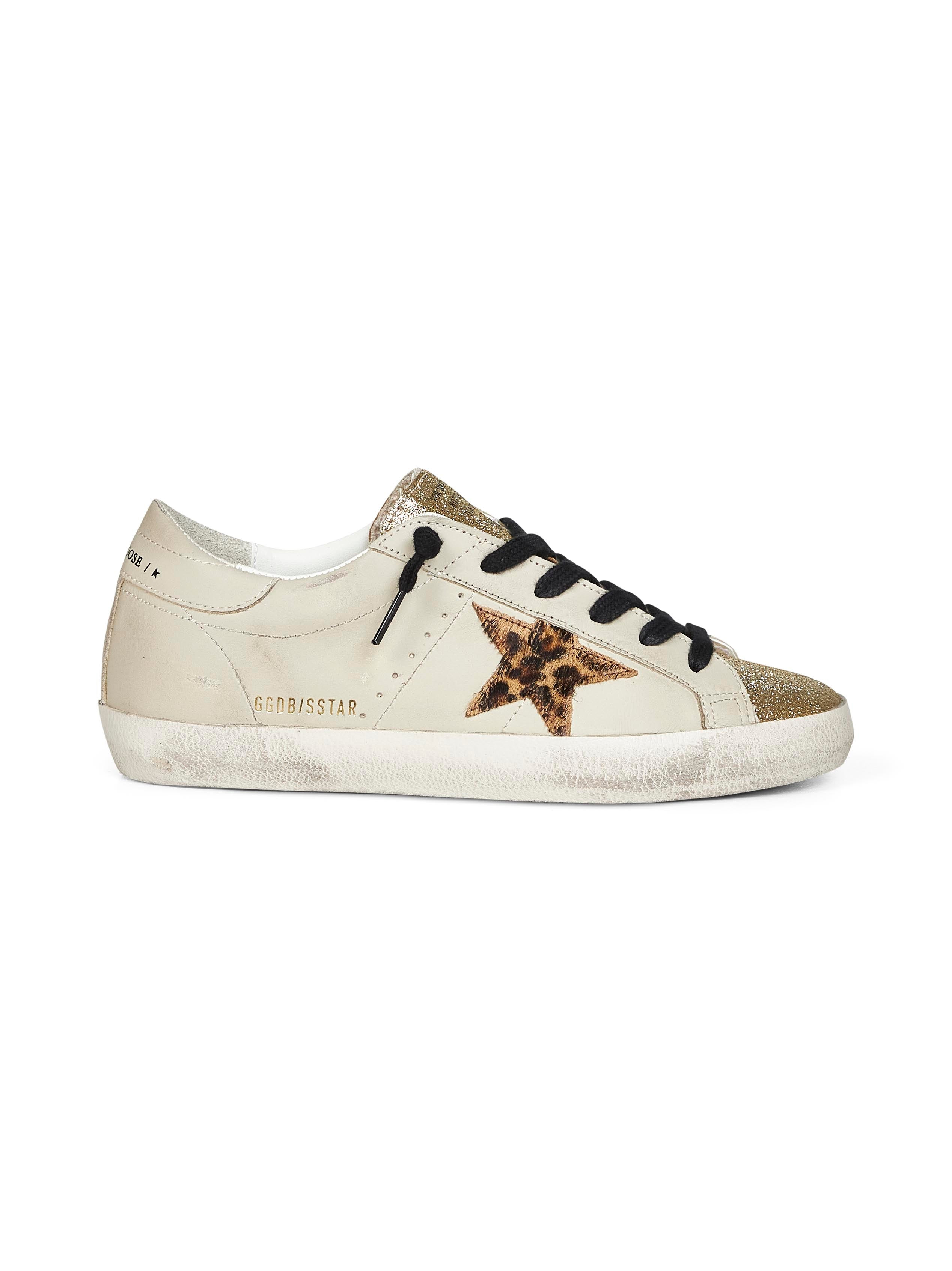 Super-Star distressed glittered leather and calf hair sneakers Off-white
