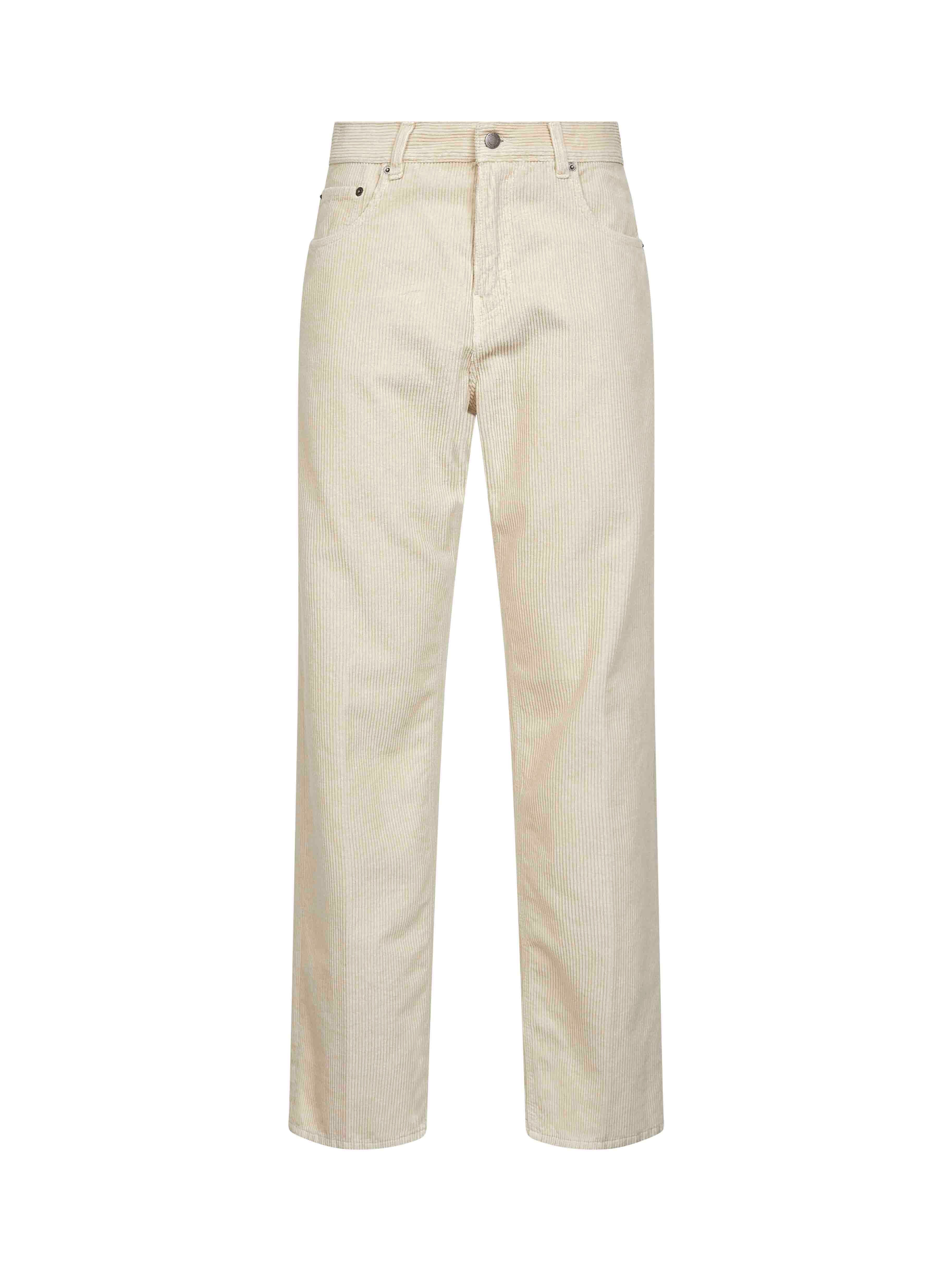 - Covered front closure, metal logo button - Low-rise waist with belt loops - Five-pocket model - Logo patch at back waistband - Straight leg - Boyfriend fit - Ecru color - 100% cotton - Made in italy Natural (Veg): Cotton100 % Made in: ITALIA Season: A25 HEW0330GF156PT0336