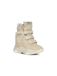 - Front velcro straps fastening - Rounded toe - Padded leather tongue with fabric label with contrasting "marant" logo - High-cut padded suede calfskin leather collar - Suede calfskin leather upper - Leather insole and lining - Rubber sole; inner wedge - Sole height: 40mm - Beige color - 100% leather - Made in portugal Furs & Skins: Lambskin80 % Furs & Skins: Calf Leather20 % Made in: Portugal Season: A25 BK0009FAA1E18S90BE
