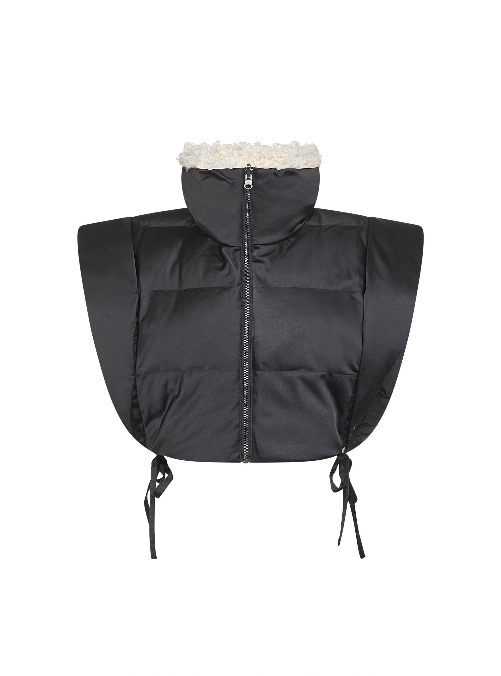 - Front silver-toned metal zip closure - High collar; tonal marant lettering embroidered at back - Structured turn-down shoulders; sleeveless - Adjustable side ties at hem - Reversible satin nylon design with contrasting faux fur inner side - Cropped cut - Black color - 100% polyester - Made in extra eu Synthetic: Polyester100 % Made in: China Season: A25 GI0010FDC3C01E01BK