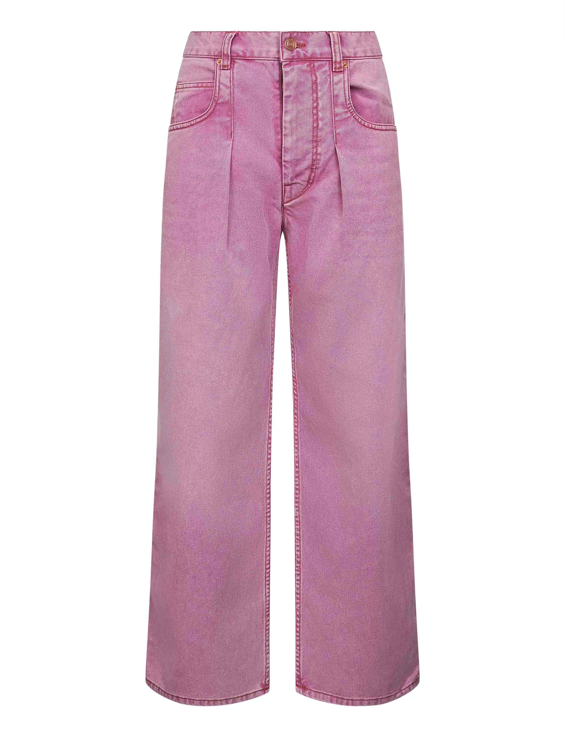 - Front zip fly and metal logo button closure - Waist with belt loops - Five-pocket model - Embossed "isabel marant" logo leather label at back waistband - Single front pleat - Wide leg - Pink color - 65% lyocell, 35% cotton - Made in extra eu Synthetic: Lyocell65 % Natural (Veg): Cotton35 % Made in: Tunisia Season: A25 PA0600FAB1H07I40PK