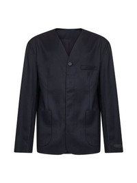 - Single-breasted covered button placket, one exposed button - V-neckline; collarless - Long sleeves, structured shoulders, three-button cuffs; embroidered logo patch at sleeve - Front patch pockets, chest pocket, inner pocket - Fully lined - Straight fit - Blue color - 100% wool - Made in france Wool or fine animal hair: Wool100 % Made in: France Season: A25 JAM00082AW00631-380