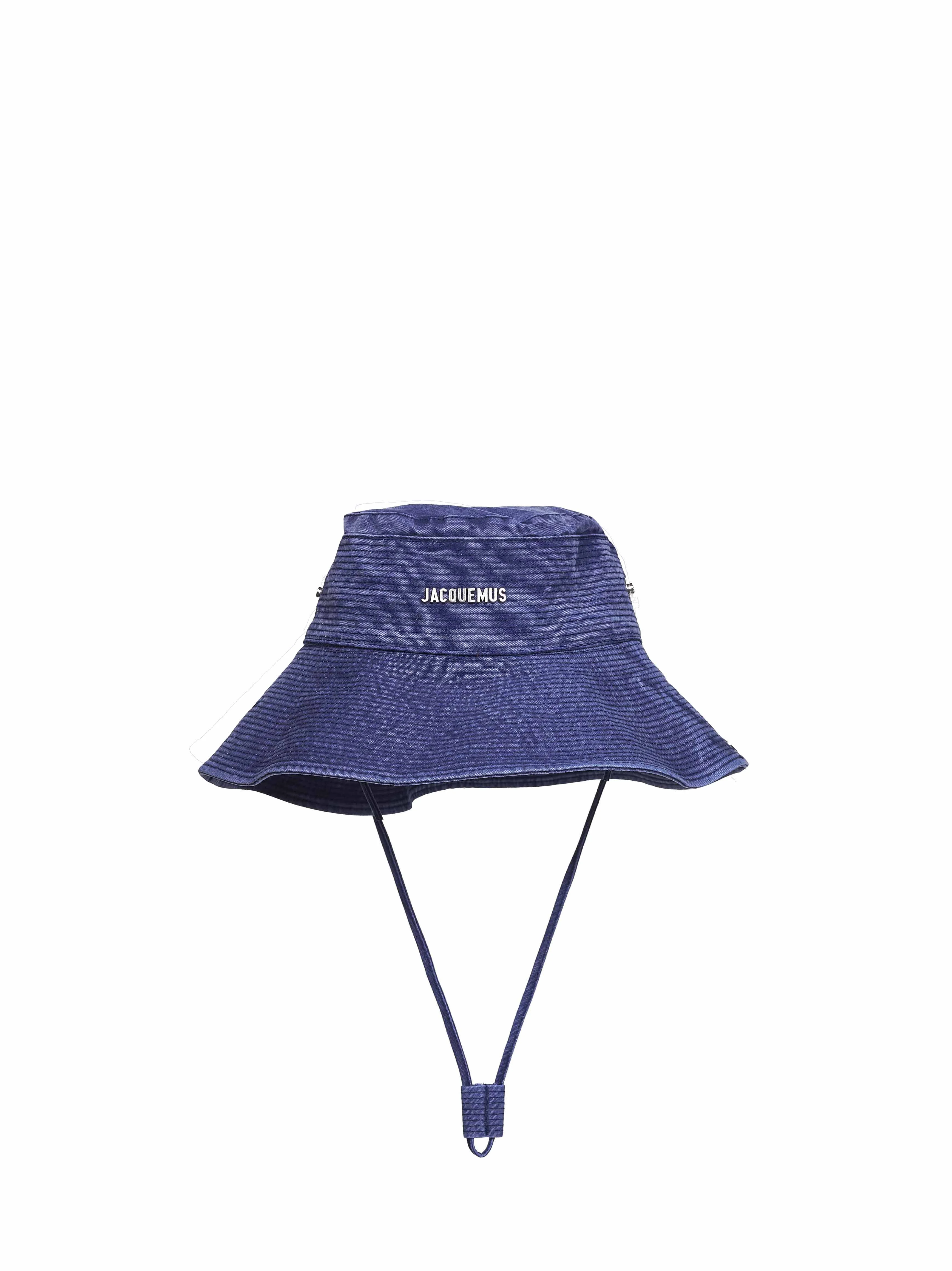 - Back adjustable contrasting grosgrain strap with metal circle and square buckles - Long adjustable denim chin strap - Metal jacquemus logo at front - Side snap buttons - Metal circle and square ventilation eyelets - Topstitched brim - Topstitching details at crown - Cotton lining - Silver-toned metal hardware - Blue color - 100% cotton - Made in bulgaria Natural (Veg): Cotton100 % Made in: Bulgaria Season: P26 ACU00721AD0061-330