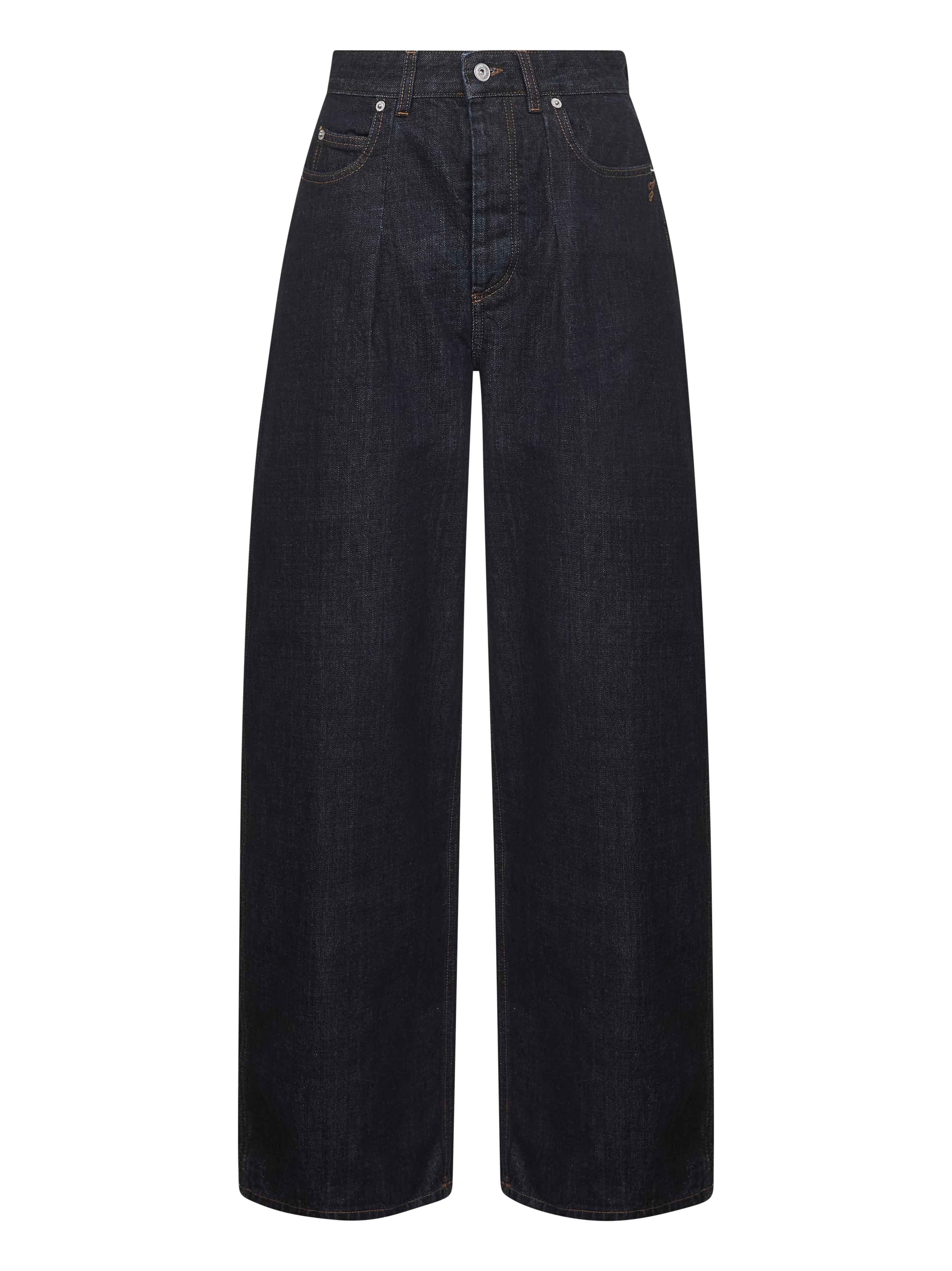 - Covered front fastening, engraved logo metal button - High-rise waist with belt loops - Five pocket model - Contrasting "j" embroidery at left hip - Embroidered denim patch at back waistband - Single front pleat; pleat detail at back hems - Contrasting topstitching - Curved leg - Rinsed raw indigo denim design - Blue color - 100% cotton - Made in italy Natural (Veg): Cotton100 % Made in: France Season: A25 PAW00609AD00036-390