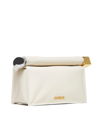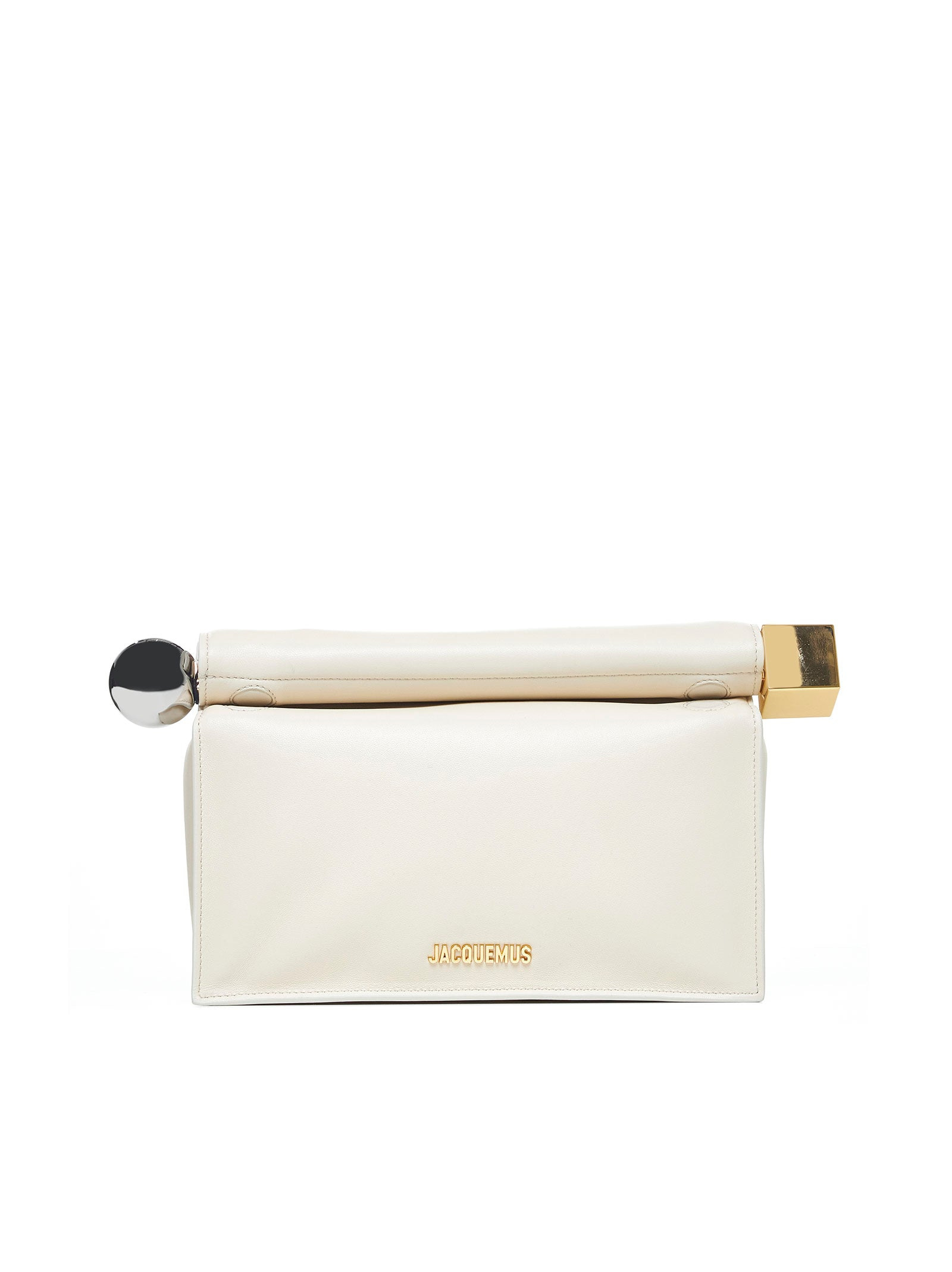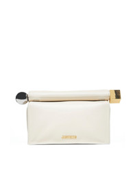 - Folded nappa leather clutch - Unrolls to reveal the interior - Closure ends feature a large silver-tone metal circle and a large gold-tone metal square - Magnetic closure - Internal card pocket - Gold-tone metal finishes and logo - Fully lined in cotton - Height: 17 cm - Length: 27.7 cm - Width: 12.2 cm - Opening: 35 cm Furs & Skins: Lamb Skin100 % Made in: ITALIA Season: A25 BAW00356AC27L14-115
