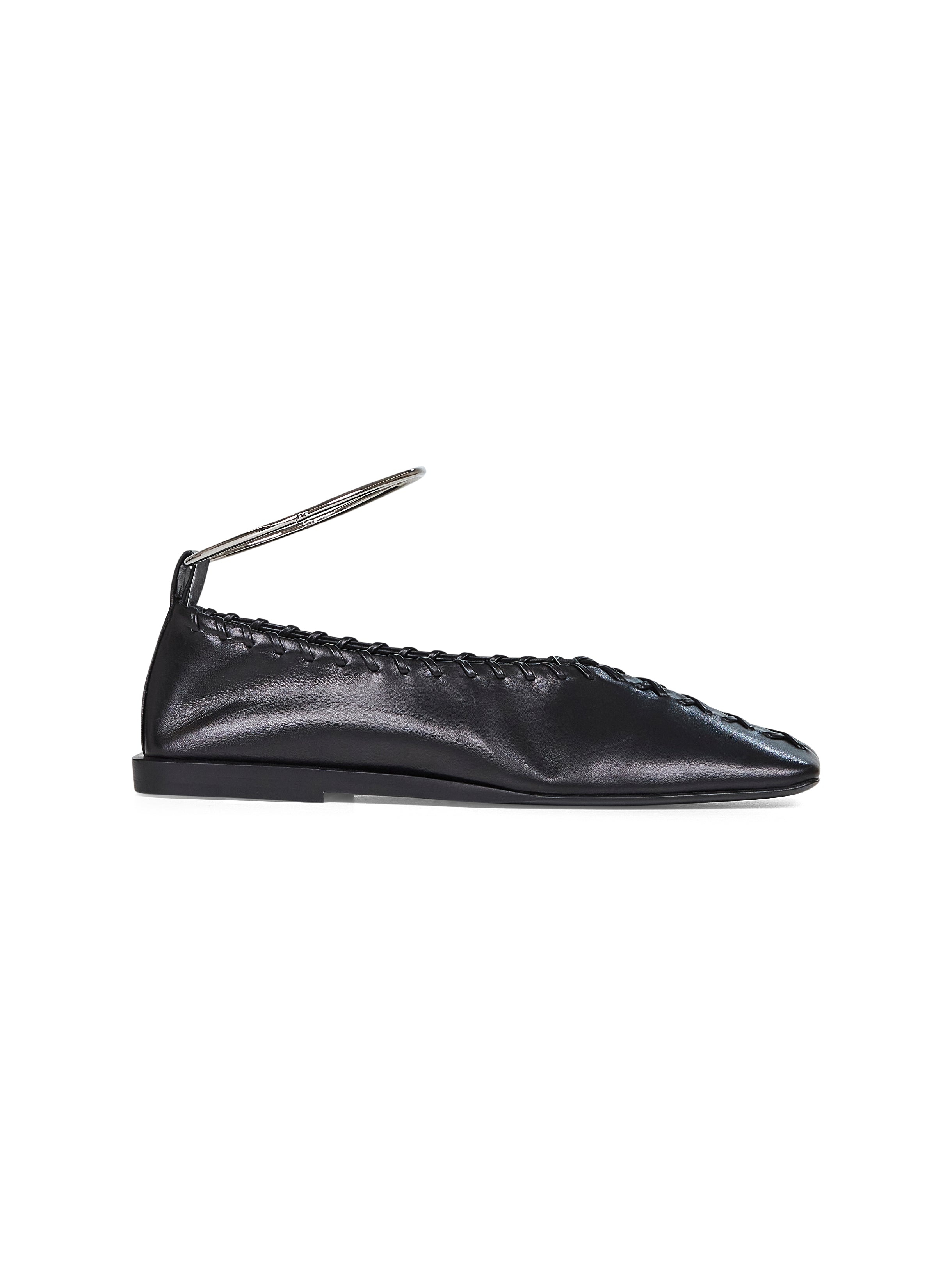 - Detachable silver-toned metal anklet bracelet - Square toe - Nappa leather upper with stitching detail - Nappa leather insole and lining; jil sander logo branded insole - Leather sole with rubber injection - Black color - 100% goatskin - Made in italy Furs & Skins: Goat Skin100 % Made in: Italy Season: A25 J15WZ0009P4864001