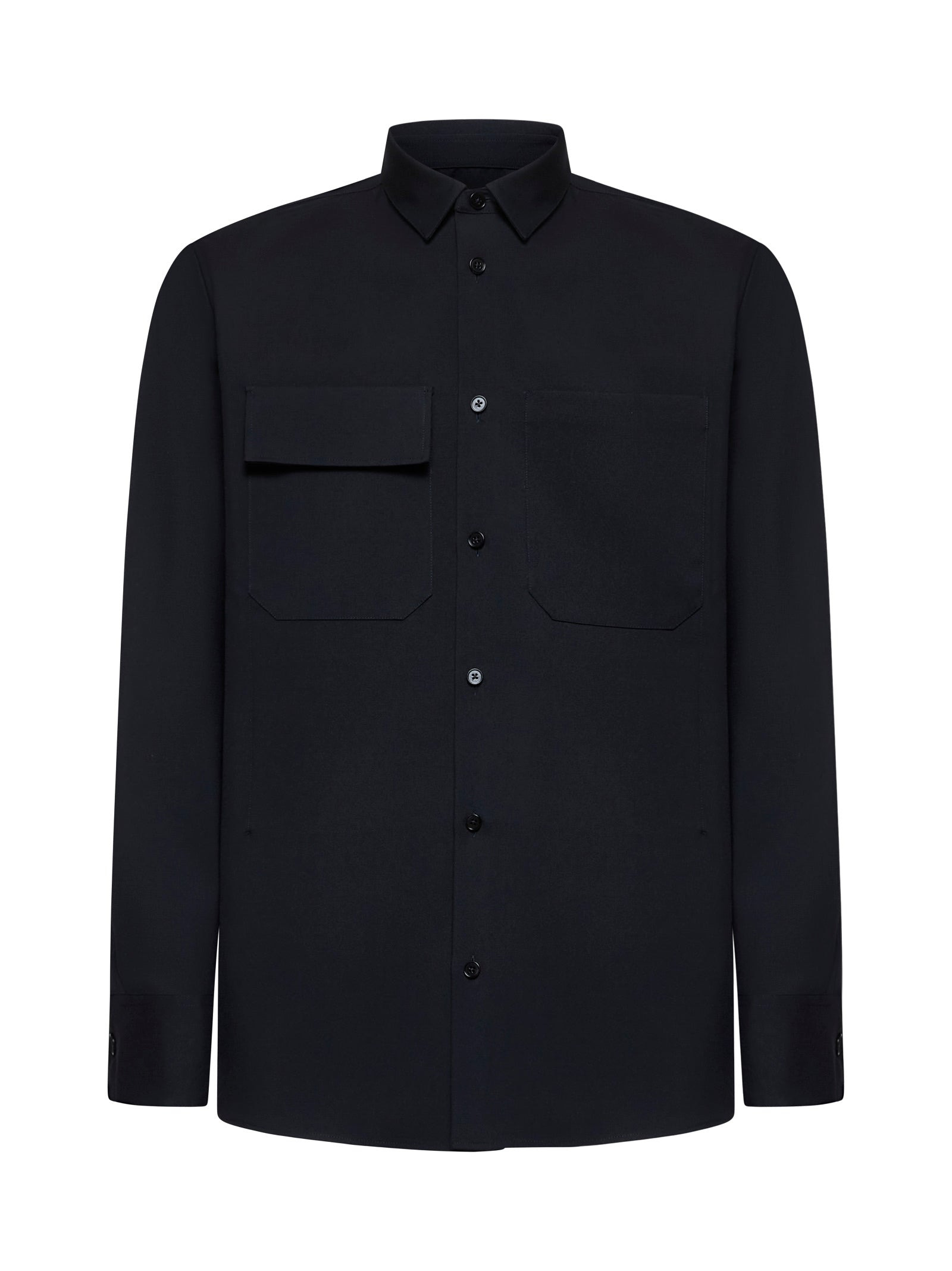 •Front button placket •Straight pointed collar •Long sleeves, buttoned cuffs •Chest patch pocket, chest patch pocket with flap •Rounded hem •Relaxed fit •Blue color •100% Wool •Made in Italy Size and fit: Model is 186 cm tall and wears size 40 Country of manifacture: Italy ID designer: J23DL0003J40159401