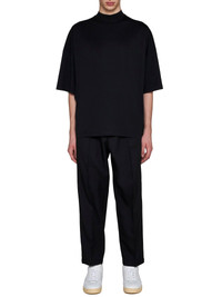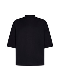 Jil Sander’s black cotton boxy-fit t-shirt featuring a ribbed mock neck and dropped shoulders. Color: black Size and fit: Model is 188 cm tall and wearing a size M Composition: 100% cotton Country of manifacture: Italy ID designer: J21GC0005J45084001