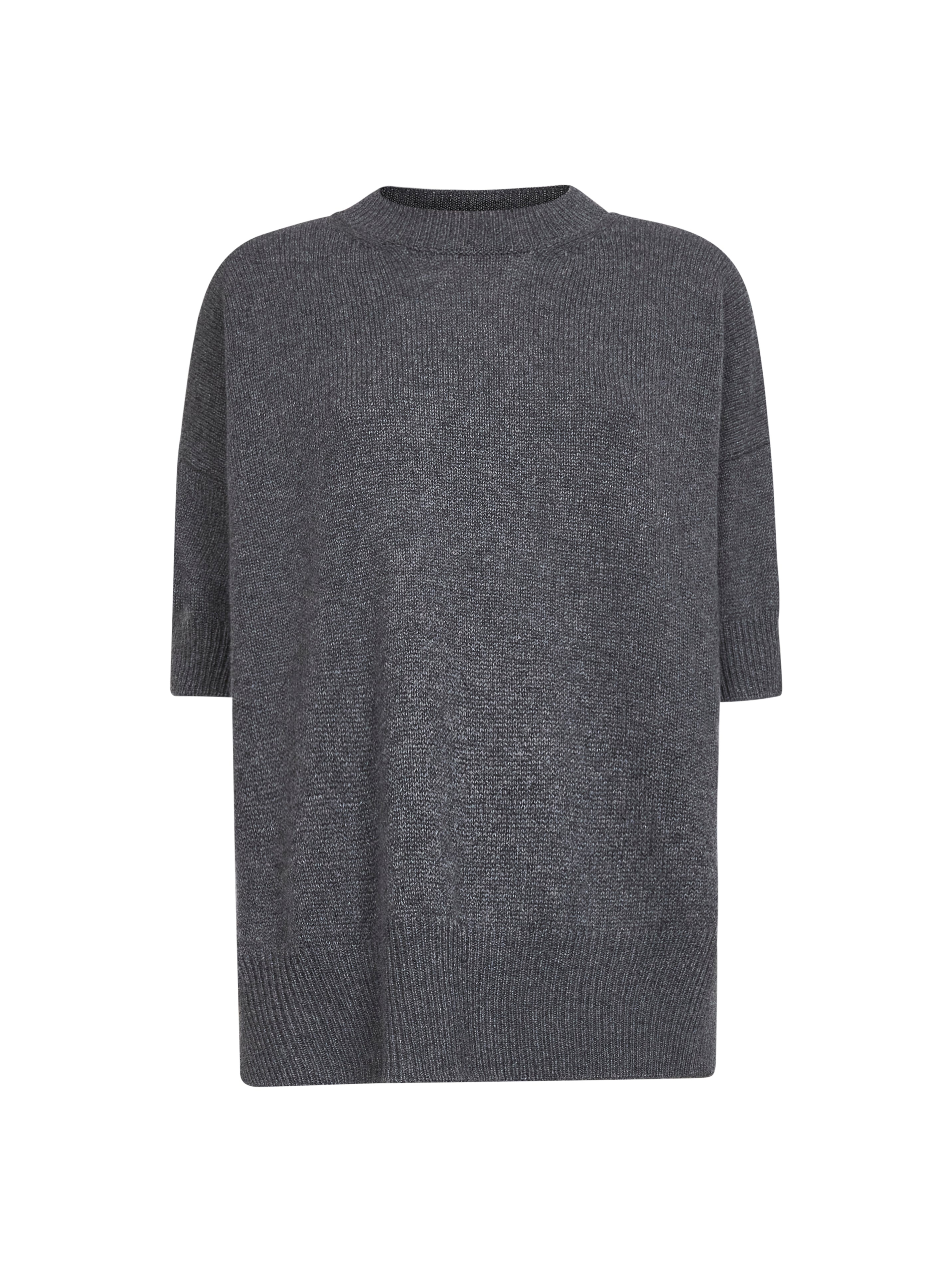- Ribbed crewneck - Short sleeves, dropped shoulders - Side slits at bottom - Ribbed cuffs and bottom band - Dropped back hem - Loose fit - Grey color - 100% cashmere - Made in italy Wool or fine animal hair: Cashmere100 % Made in: Italy Season: A25 J02GP0014J13206035